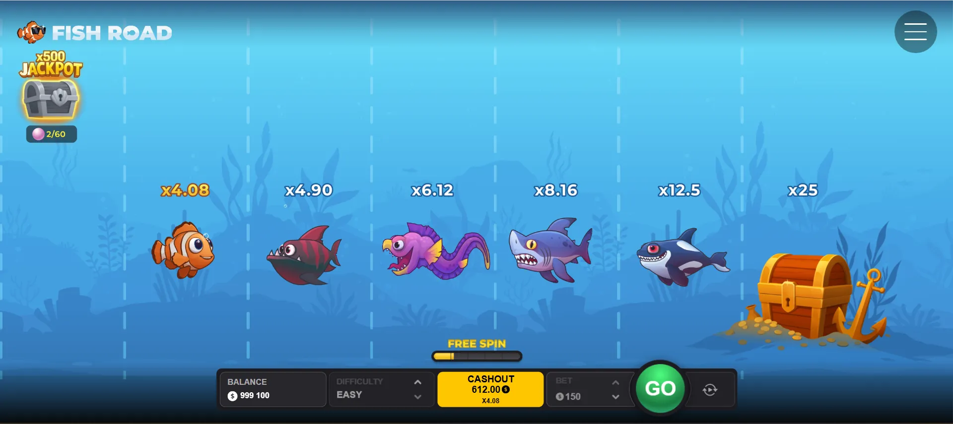 Fish Road es una emocionante máquina tragamonedas en línea que simula una aventura acuática donde puedes encontrar peces exóticos como peces payaso y tiburones. Está diseñada para ofrecer grandes multiplicadores y potenciales recompensas a través de su trayectoria única.
